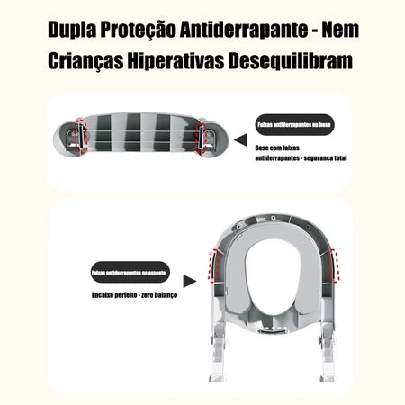O BabyClimb - para crianças! projetado não apenas para promover a crescente independência de seu filho, mas também para transformar cada momento de uso do banheiro em uma jornada de aumento de confiança, tornando a transição perfeita para os pais e muita diversão para crianças pequenas.